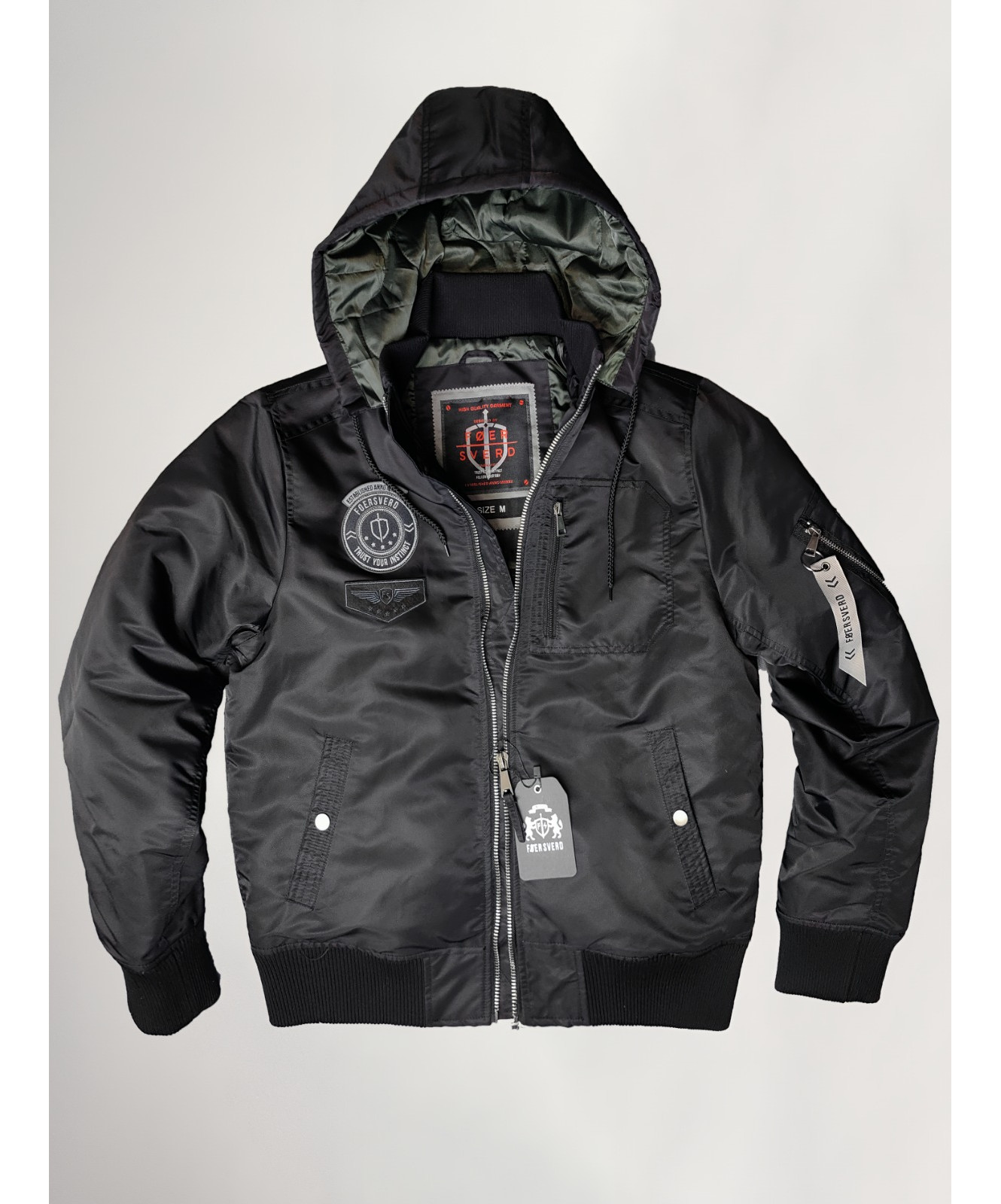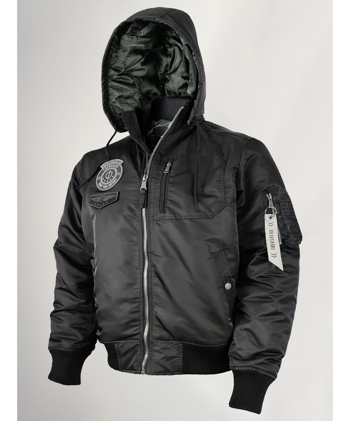 Капюшон легко отстегивается, на молнии. Две модели : с отстегивающимися патчами и лаконичная модель без патчей.