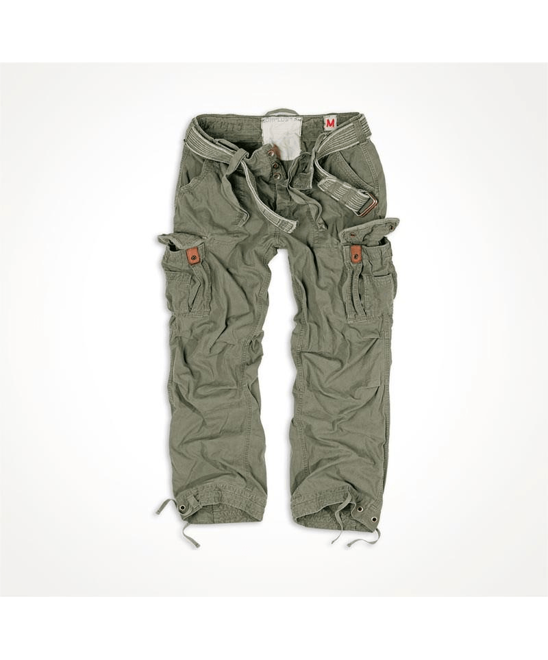 Мужские брюки PREMIUM VINTAGE Surplus это военные брюки свободного покроя в стиле ретро - актуальные и уникальные! Свободный покрой делает их пригодными, как для полевых условий, так и для повседневной носки. Стандартные особенности винтажных штанов, такие как шнурки, кнопки и карманы, дополнены: -широким поясным ремнем из хлопка, который застёгивается на металлическую пряжку и -экстра-карманами с тесёмочной отделкой. Почти все накладные карманы с клапанами на кнопках. Кнопки и пуговицы имеют ржавчину, что придает данной модели брюк уникальный вид. Комплектуются брюки PREMIUM VINTAGE широким поясным ремнем из хлопка, который застёгивается на металлическую пряжку. Ткань искусственно состарена по технологии stone wash. Материал: 100% хлопок.
