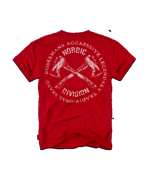 Мужская футболка NORD DIVISION с округлым вырезом горловины от Dobermans Agressive. На груди и спине одинкаовый тематический принт разной велечины(перекрещенные топоры) . 100% Хлопок.