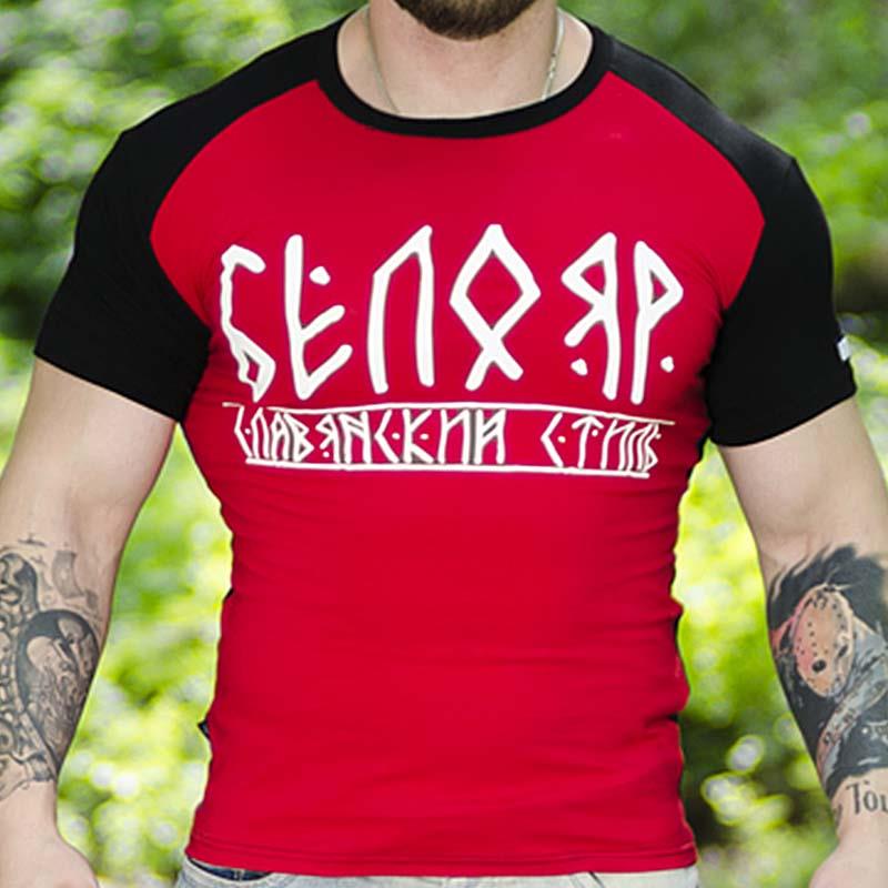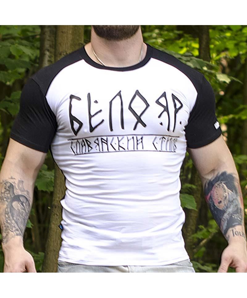 Мужская односторонняя футболка Лого-3D от Белояр спортивного, облегающего покроя. На груди объёмная принт - надпись Белояр-Славянский Стиль. Состав ткани: 92% хлопок+8% лайкра.