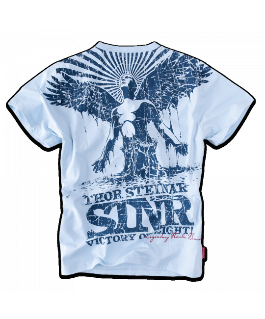Мужская футболка Phnix от Thor Steinar приталенного покроя из хорошего качественного хлопка. Области шеи, для большего комфорта,отделана бархатной лентой. По всей спине, футболка оформлена красочным, художественным принтом. Спереди, на левой груди небольшой рисунок - сочетание вышивки и принта. Для любителей более свободного кроя - заказывайте на размер больше. 100% Хлопок.