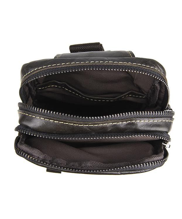 Оригинальная мужская кожаная сумка для повседневного использования. Она одинаково удобна при ношении и на груди, и на спине. Длинный ремень регулируется на нужную длину при помощи фиксаторов. Модель имеет два объемных внутренних отделения для крупных вещей, закрывающихся на замок-молнию. Дополнительные кармашки для ключей и мелких вещей прошиты в передней и задней части. Все внутренние отделения оформлены прочной подкладочной тканью. Изделия можно носить на правую и левую сторону, перекинув ремень на нужный фиксатор.