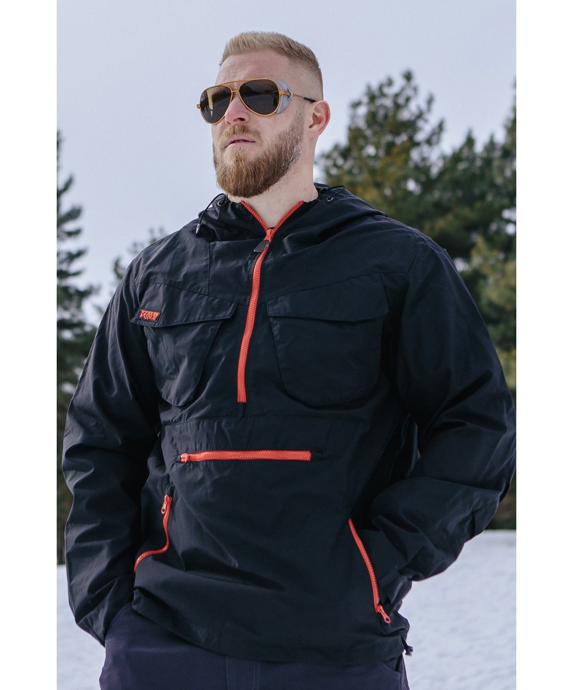 Удлиненная молния на груди обеспечивает комфорное снятие и одевание анорака.