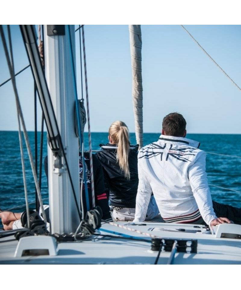 Мужской спортивный блузон Flagg от Thor Steinar в морском стиле, из актуальной коллекции бренда. Куртка имеет три наружных кармана, два внутренних и выборочно декорирована контрастными полосками. В воротнике-стойка скрытый капюшон. Металлические заклёпки и кнопки с тиснением. В области плеч объёмный принт в виде британского флага. Непромокаемая, непродуваемая, специально создана для морских прогулок и подобных природных условий. Не подведет при любой непогоде! Состав: верхний материал: 70% хлопок,30% нейлон, с полиуретановым покрытием. Подкладка: 100% полиэстер.