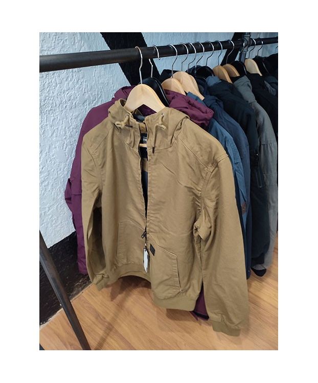 Ничего лишнего - удобные врезные карманы на уровне пояса, хлопковая толстая резинка- манжет на рукавах и по краю изделия. Канвас - это очень плотная хлопковая ткань, не пропускающая пыль, грязь, ветер. Все ткани Vintage Industries проходят специальную энзимную обработку , для того чтобы цвет не менялся и не вымывался со временем. Куртка на молнии, монолитный ворот- капюшон - препятствует проникновению холодного воздуха, капюшон регулируется шнурком. Стильная вещь для всех случаем жизни .