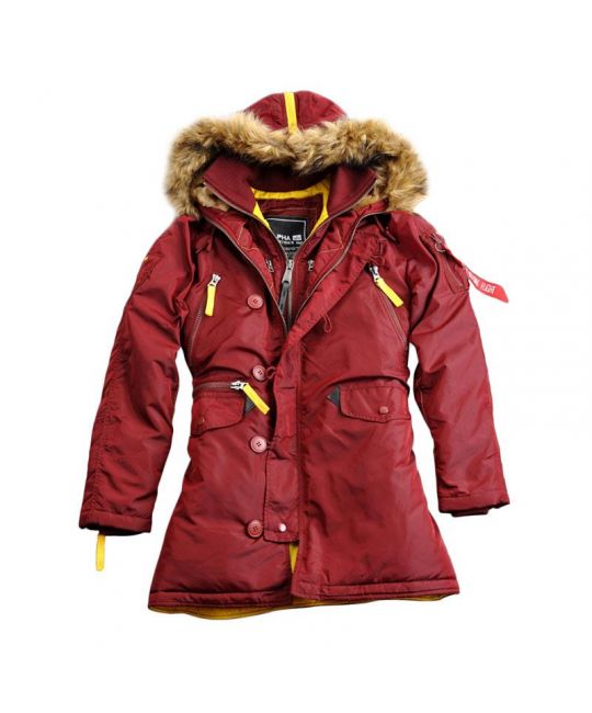 Женская зимняя куртка PPS N3B Wmn от Alpha Industries стильная, с яркими контрастными вставками , подымает настроение и радует глаз. Объёмная стёганая парка с капюшоном, оттделаным съёмным искуственным мехом закрывается на надёжную молнию, с ветрозащитным клапаном на пуговицах. Воротник и вшитые плотные манжеты на рукавах, пошиты из прочной ребристой резинки. Рукава покроя реглан и капюшон оформлены контрастными молниями и практичными карманами. Парка слегка приталена. Множество других мелких деталей можно рассмотреть на прилагающихся фотографиях или увидеть воочию придя в наш магазин. Отличное качество и тепловые показатели куртки, не оставят никого равнодушным. Внешний материал и подклад: 100% нейлон, наполнитель: 100% полиэстер.
