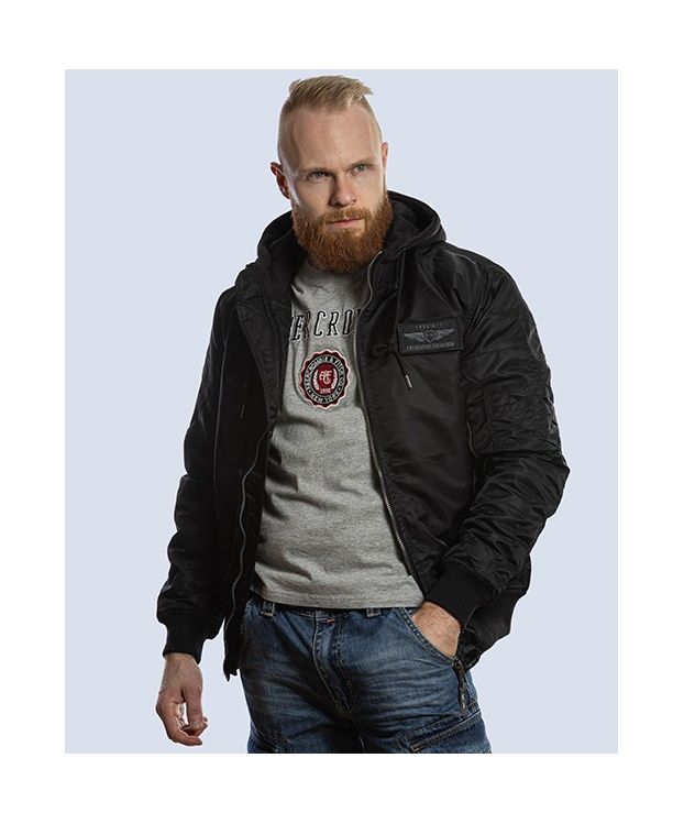 Мужской бомбер с капюшоном JU-02P патч черный Foersverd