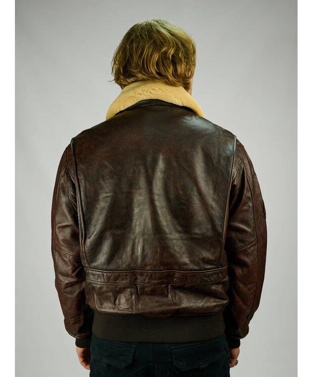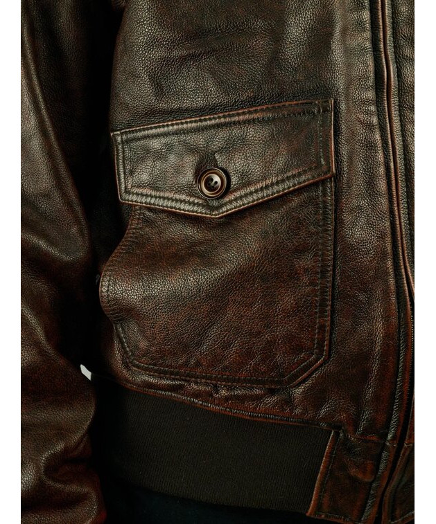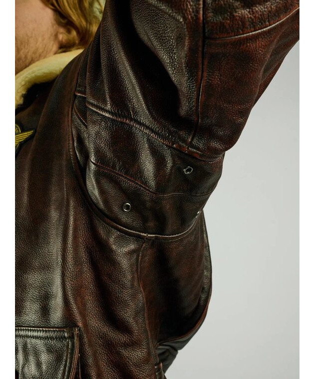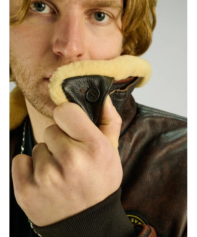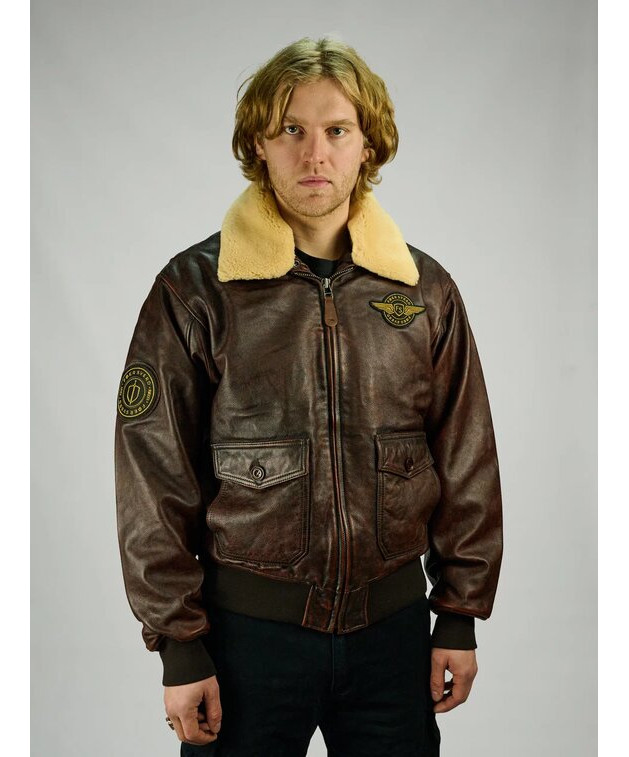 Мужской кожаный пилот в стилистике курток A-2 со сьемным воротником из натуральной овчины. Куртка сшита из толстой мягкой кожи, прошедшей обработку по технологии water washed, и получила интересный винтажный эффект. Модель имеет утепленный подклад c рисунком, 2 удобных внутренних кармана на кнопке и молнии. На груди оригинальный фирменный патч на тему авиации. На рукаве нашит шеврон, надежная молния YKK. Верх: 100 % натуральная, толстая кожа премиум класса. Манжеты и пояс из очень качественного плотного материала. Подкладка: 100 % нейлон. Сезон: осень-зима.