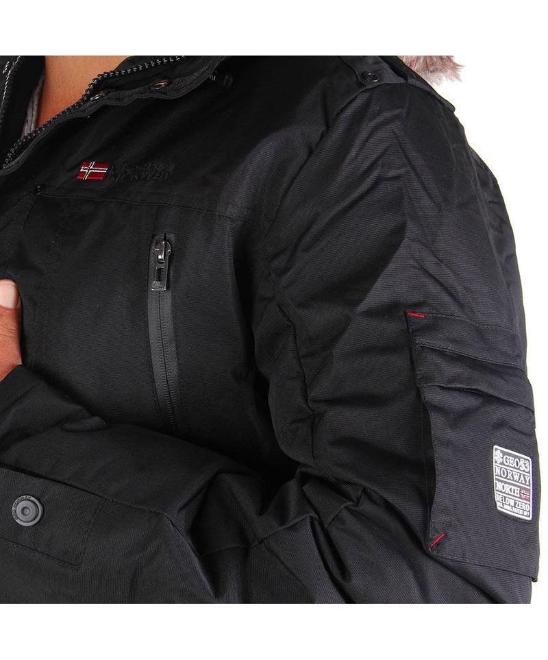 Мужская зимняя функциональная куртка Cluses от Geo.Norway - водоотталкивающая, ветрозащитная и дышащая. Куртка очень качественная и пошита с большой любовью к деталям. Остаётся сухой и тёплой даже в очень суровых погодных условиях. -Капюшон с мягким флисовым подкладом и съёмной опушкой из искусственного меха. -Широкие ламинированные молнии, с достаточно крупным язычком,за который легко ухватиться не снимая перчаток. -Множество функциональных как внешних, так и внутренних карманов. -Мягкие, но плотные вшитые трикотажные манжеты. -Внутри куртка имеет подкладку из толстого слоя тёплого флиса. -Капюшон и подол куртки утягиваются кулиской. Куртка идеально подходит для зимних видов спорта и не только. Вы полюбите её и не захотите снимать даже ночью:) Одна из самых продаваемых моделей этого сезона в Европе. Материал: 100% полиэстер.