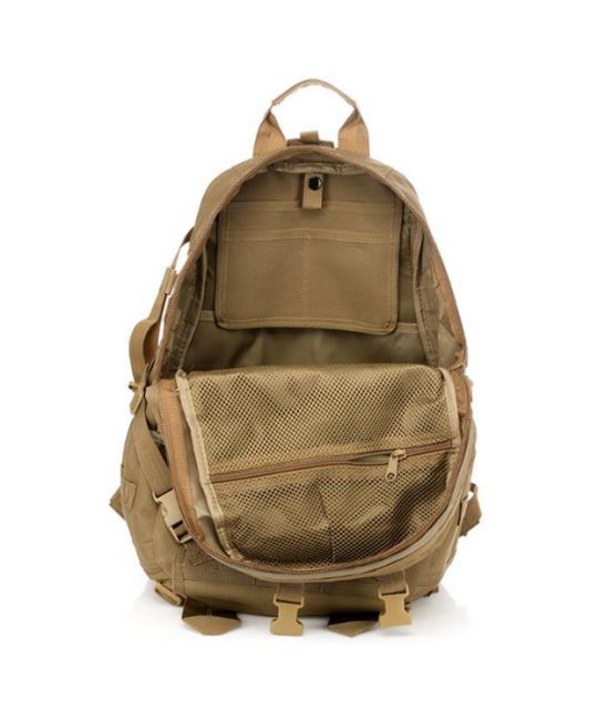Очень вместительный рюкзак из прочной износоустойчивой ткани имеет основное отделение для крупных вещей. Для мелких и часто используемых предметов снаружи предусмотрен дополнительный отдел и специальный кармашек. Все отсеки закрываются на двусторонние замки-молнии. Фиксаторы и застежки сделаны из ударопрочного пластика. Спинка рюкзака, как и широкие лямки ортопедической формы, удобна при ношении. Косые ремни, проходящие от спинки до лицевой части, придают изделию компактный вид.