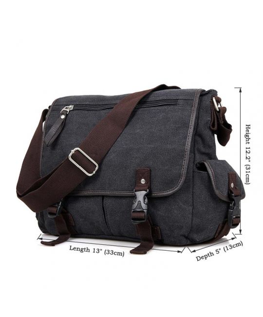 Удобная и вместительная сумка из износостойкого холщового материала, винтажного "вымытого" вида. Большое основное отделение для документов и ноутбука. Несколько внешних карманов, дополнительный внутренний карман на молнии на передней части изделия. Сумка закрывается на замки фастекс. Удобный широкий плечевой ремень, регулируемый по длине. Размер приблизительно 13 L x 5 D x 12,2 дюйма дюймов (33 см L x 13 см D x 31 см H) Вес: 0,97 кг
