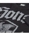 Модель толстовки на молнии с высоким воротником. Два кармана спереди, на левом рукаве небольшая этикетка с логотипом Dobermans Aggressive.Нижний край толстовки и рукава отделаны плотной ребристой вязкой. Толстовка изготовлена из высококачественного хлопка. На спине — объемный принт. Надпись «HONOR» под символом орла, хватающего змею когтями, и надпись «DOBERMA'S». Вышитая эмблема с изображением орла и змеи на левой стороне груди.