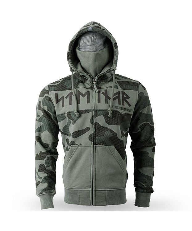 Худи на молнии "Orkanger" с маской в капюшоне. Высокий воротник-стойка, большие открытые передние карманы, скрытая молния с подвеской из материала для лёгкого расстёгивания, регулировка капюшона толстой кулиской, манжеты рукавов и низ худи из качественного трикотажа. Большая руническая надпись STEINAR на груди. Фирменный ярлык в боковом шве и на капюшоне.