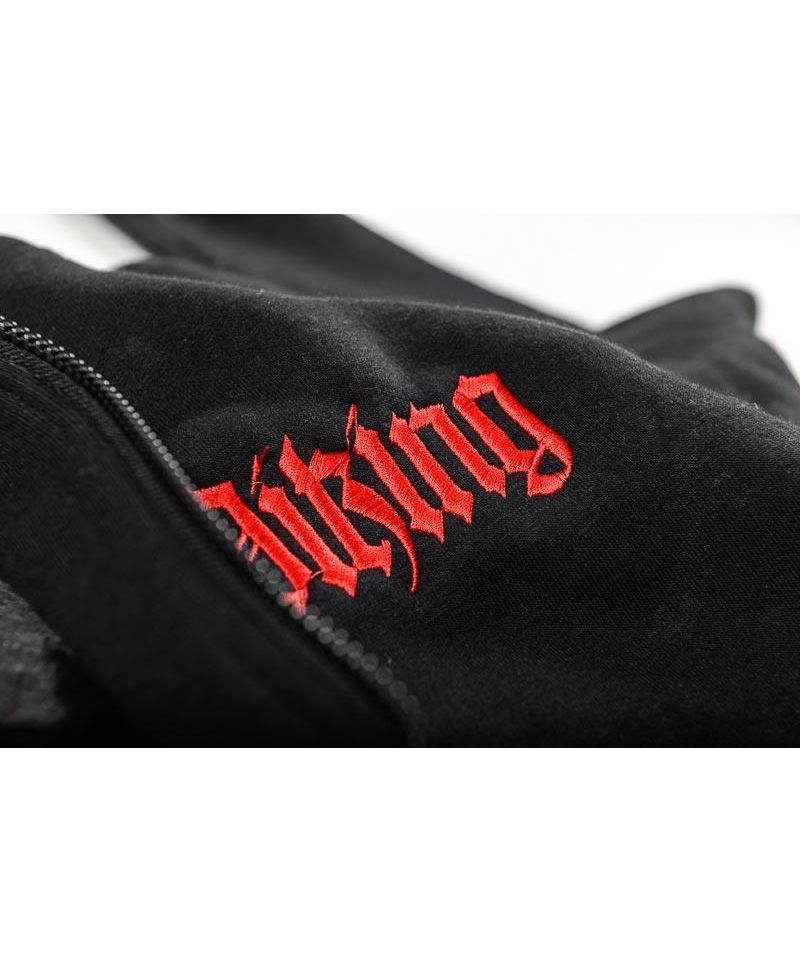 Мужская толстовка Viking от Dobermans Agressive из актуальной коллекции, с утягивающимся кулиской капюшоном. Застегивается на молнию до самого верха. Манжеты и низ изделия окантованы в рубчик, по боком карманы в стиле кенгуру. Модель декорирована тематической принт-аппликацией на спине и небольшим принтом на груди спереди. 100% Хлопок.